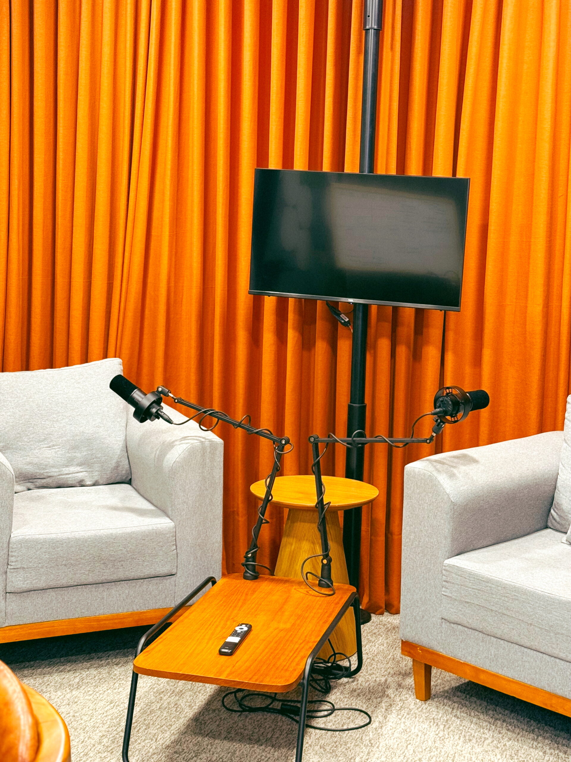 Ambiente equipado para gravações e produção de conteúdo digital.